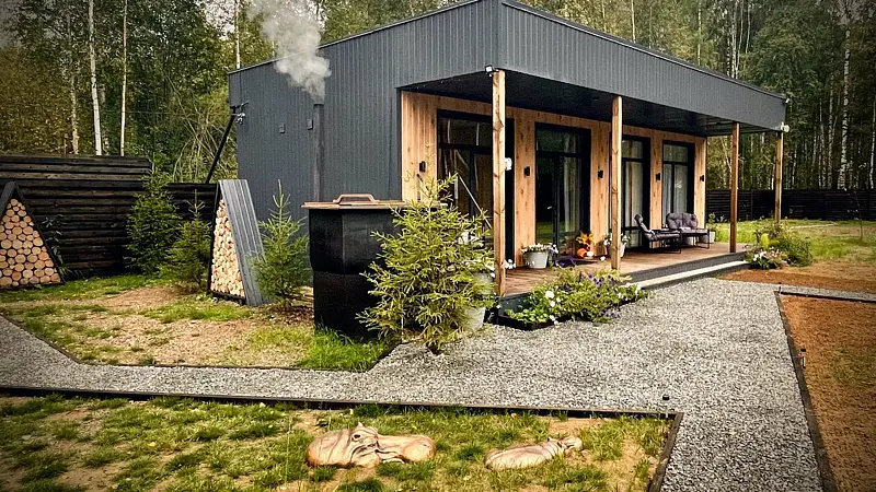 Представьте: панорамный вид, уютный дом в стиле лофт и атмосфера волшебства для вашей компании. В доме и на территории вы найдете всё для комфортного отдыха. Оборудованная кухня-гостиная с обеденной зоной, отдельная спальня, теплый пол и климат-контроль. В ванной комнате вы найдете необходимые гигиенические принадлежности и полотенца.
