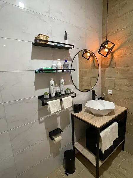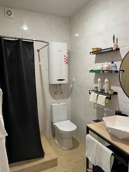 Санузел с душевой (предоставляются свежие полотенца, мыло, туалетная бумага, бумажные полотенца, антисептик, ватные диски/палочки, одноразовые зубные наборы).
