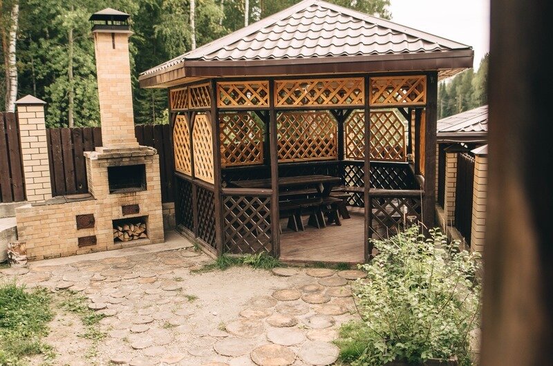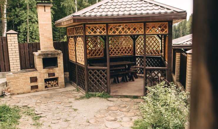 Стоимость аренды беседки 500 ₽/час (свыше 10 человек доплата 200 ₽/чел) аренда от 4 часов, В стоимость включены принадлежности для приготовления шашлыка.