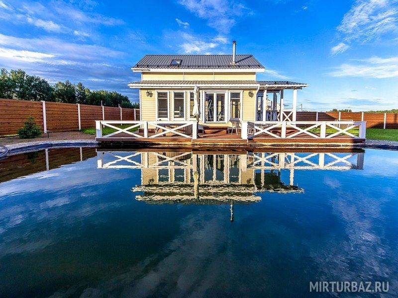 Для проживания гостей предусмотрены 2 коттеджа, которые построены в американском стиле. Неподалеку имеется чистый пруд, в котором туристы могут купаться. Рядом есть гамак и беседка. На территории базы есть спортивная площадка, дорожки для пеших прогулок. Есть баня с купелью и джакузи. В зимнее время на базе заливается каток и горка. Под Новый год устанавливается большая елка.