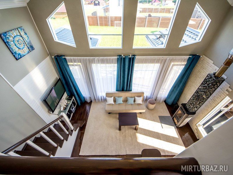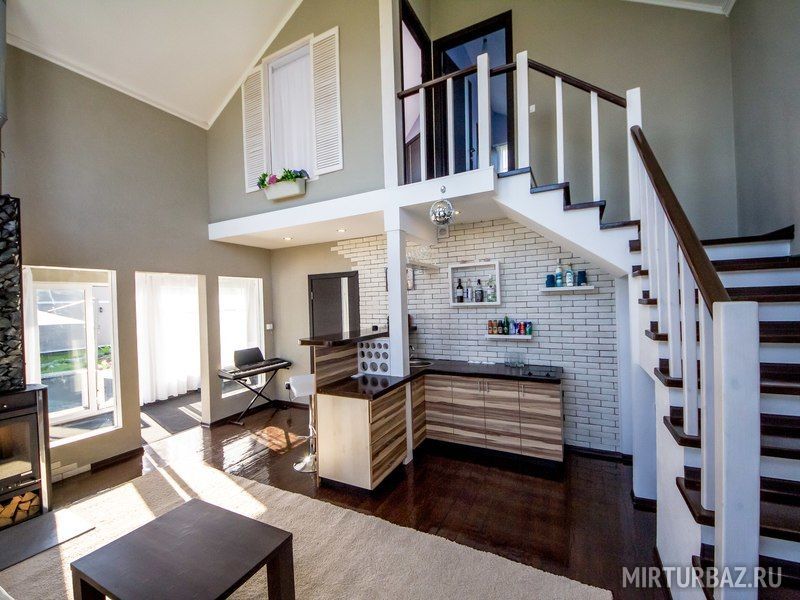 Светлый и многофункциональный двухэтажный дом в скандинавском стиле с камином.