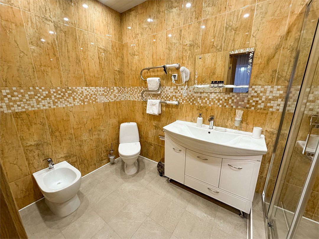 телевизор, Wi-Fi, фен, электронные замки, душевая кабина, тапочки, двуспальная кровать, две односпальные кровати, тумбы, шкаф для одежды, вешалки, письменный стол, багажная тумба, зеркало, ковер, чайный набор, обслуживание номеров, чайник, унитаз, раковина, душ, вид на город, кулер на этаже, вид во двор, стаканы, стул, стол, туалетные средства, туалет, раскладное кресло, телевизор со Smart TV, теплые полы, рабочий стол, кресло-кровать, чайная станция, вешалки-плечики, мыло, затемняющая штора, зеркало в полный рост, открытый шкаф, Android TVВ гостиничном номере