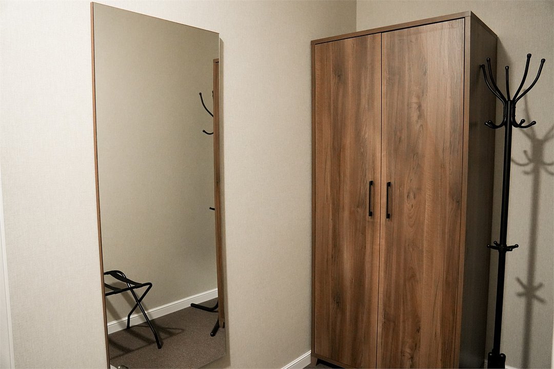 Уютный и светлый номер, идеально подходящий для друзей, коллег или гостей, предпочитающих раздельные кровати. Интерьер выполнен в спокойных, тёплых тонах с элементами натурального дерева, что создаёт атмосферу уюта и отдыха. В каждом номере: две удобные односпальные кровати с белоснежным бельём; современный телевизор; рабочая зона с зеркалом; вместительный шкаф; чайный набор (чайник, чашки, стаканы); собственная ванная комната с душем, феном и туалетными принадлежностями. Номера расположены на верхних этажах, откуда открывается красивый вид на Хибины и город. Этот вариант подойдёт как для короткой деловой поездки, так и для отдыха после активного дня в горах.Видовой номер комфорт с доп местом