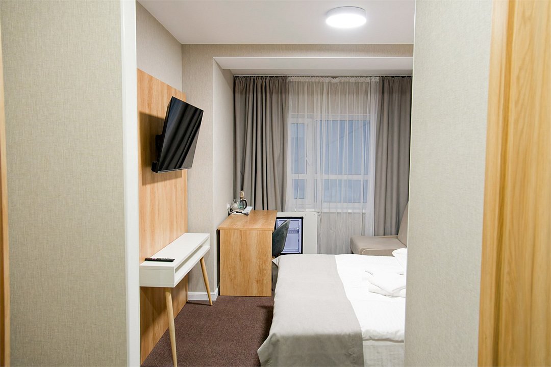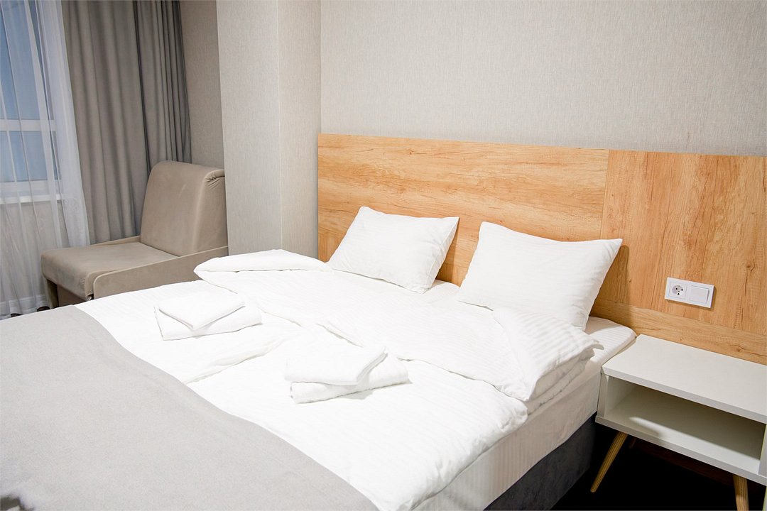 Уютный номер с видом на город, горы или парк. Дополнительное раскладное кресло позволит комфортно разместить ещё одного гостя. В номере: удобная двуспальная кровать с белоснежным бельём; дополнительное спальное место (раскладное кресло); телевизор и рабочая зона с письменным столом; чайный набор с чайником и посудой; вместительный шкаф для вещей; собственная ванная комната с душем, феном и туалетными принадлежностями. Номера расположены на 4 и 5 этажах. Из окон открывается приятный вид на город и горы. Такой номер подойдёт для романтической поездки, семейного отдыха или командировки с комфортом.Услуги и удобства