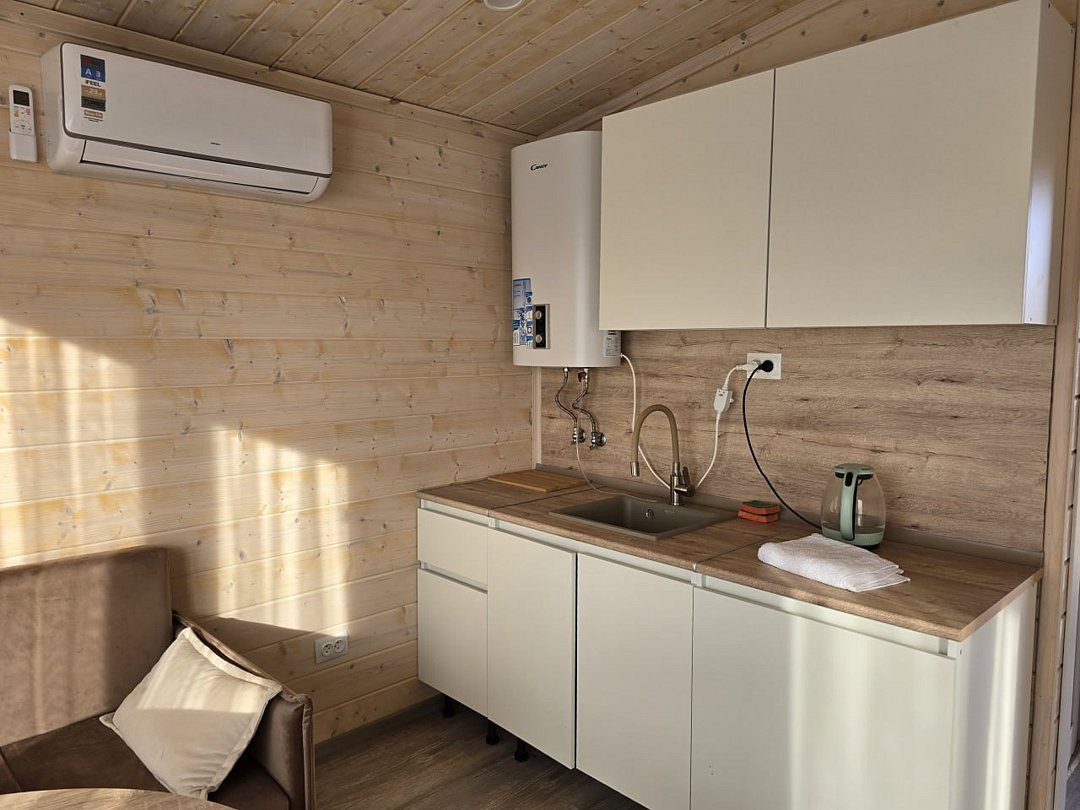 Двухкомнатный коттедж с кухней и ванной комнатой.