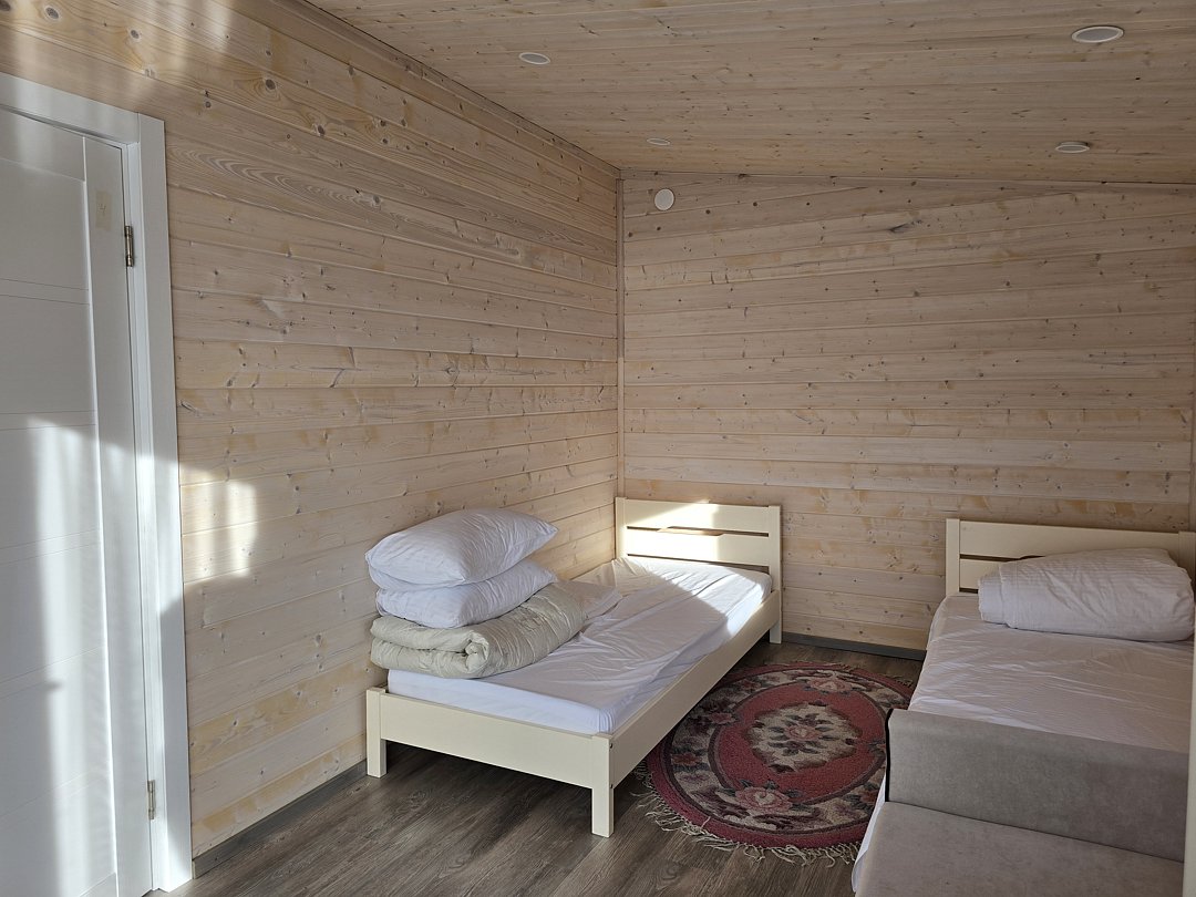 Две односпальные кровати, одна диван-кровать, одно раскладное креслоВ коттедже