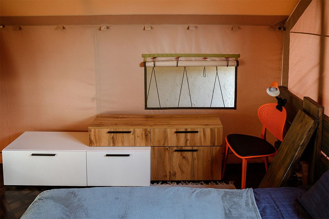 Сафари-Тент двухместный, 24 м². Вместимость до 3 мест. Один ребёнок до 12 лет — может разместиться без отдельного спального места.