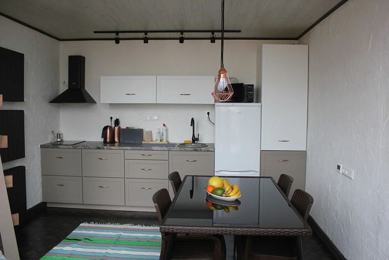 В распоряжении гостей мангальная зона, в номере — кондиционер, холодильник, микроволновая печь, чайник, электрическая плита, посуда и кухонные принадлежности.