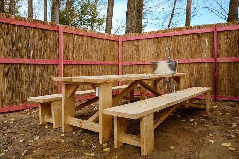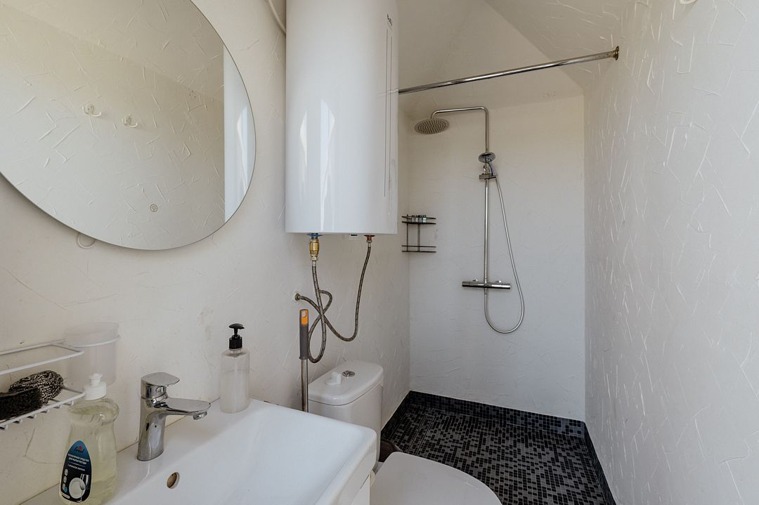 У каждого глэмпинга имеется летний душ. На территории предусмотрен общий санузел с душем.