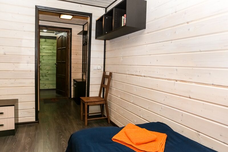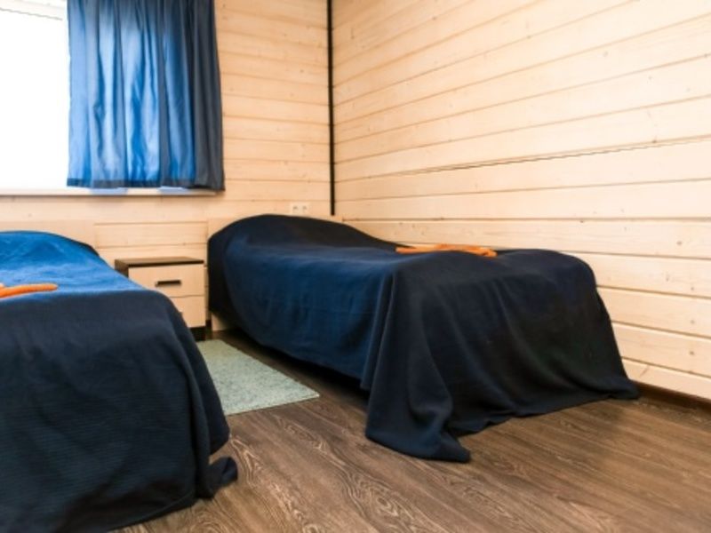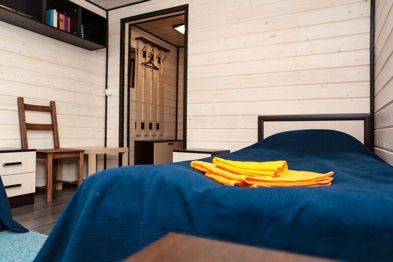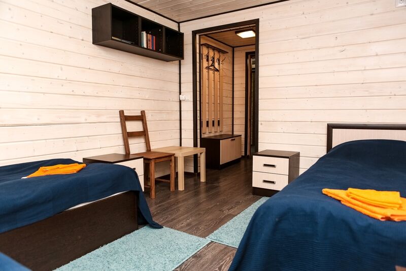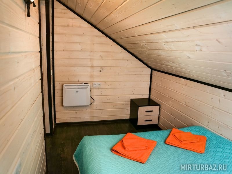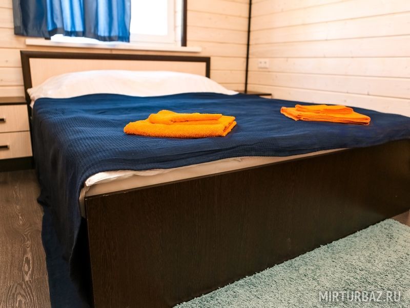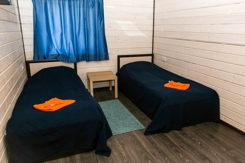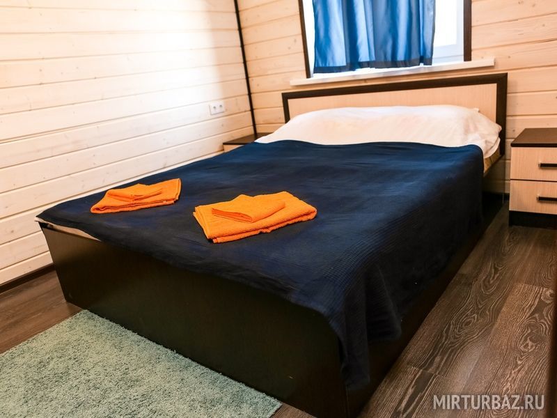 В номере две односпальных кровати или одна двухспальная кровать, отопление регулируется самостоятельно, отдельный санузел с теплым полом, феном.