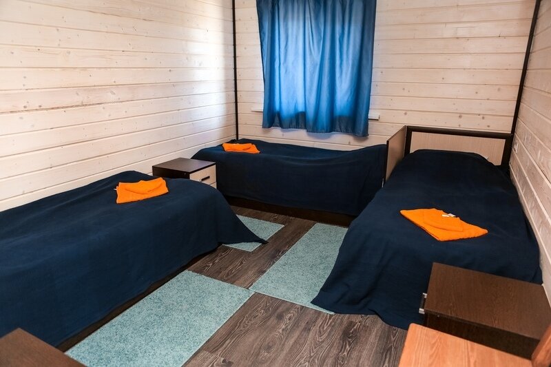 В номере три односпальных кровать, установлен личный терморегулятор, отдельный санузел с теплым полом, феном.