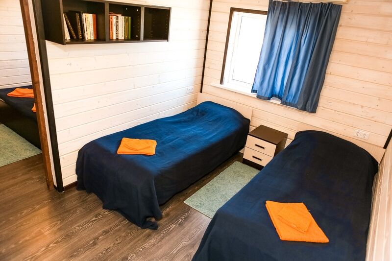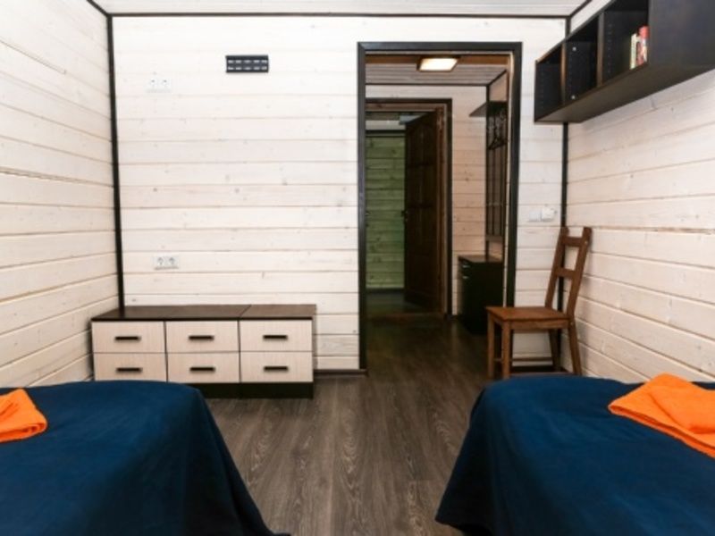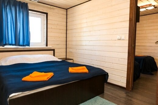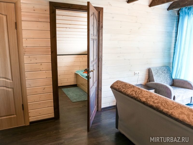 Двухкомнатный номер с двумя односпальными кроватями и одной двуспальной, установлен личный терморегулятор, в номере отдельный санузел с теплым полом, феном.