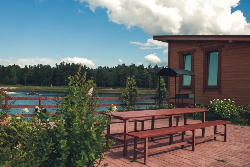 В любое время года, вы можете приятно провести время на территории базы, даже не снимая коттедж. Специально для этого у есть прекрасные отапливаемые беседки, оборудованные мангалом и просторным столом, рассчитанные на 15 человек. Беседки расположены на берегу озера.