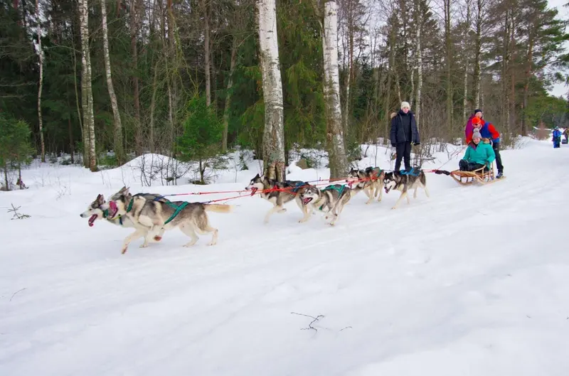Для того чтобы промчаться на собачьей упряжке по заснеженному лесу не обязательно ехать в Лапландию. Можно отъехать всего на 30 км от Санкт-Петербурга и оказаться на базе отдыха «Петрушинский Хутор».