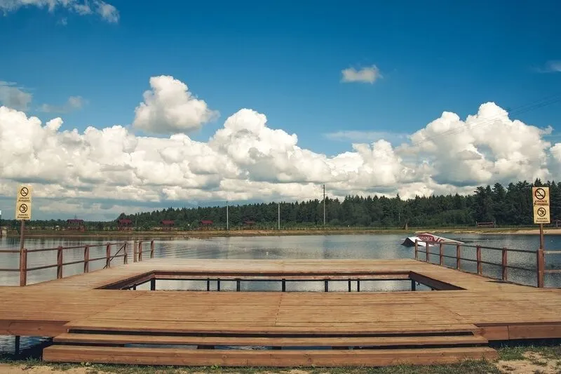 Семейный отдыхДостоинстваЗдесь хорошо отдыхать летом, имеются все условия для купания. Вода теплая, пляж чистый и благоустроенный у берега очень теплый приятный на ощупь песок. Есть детская игровая зона, там батут, горка и качели. Мои дети ловили с мостков головастиков, а потом выпускали их в воду. Выделено место для игр с мячом.