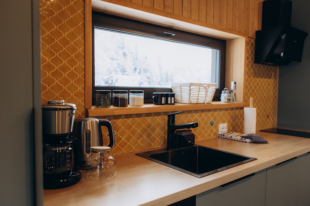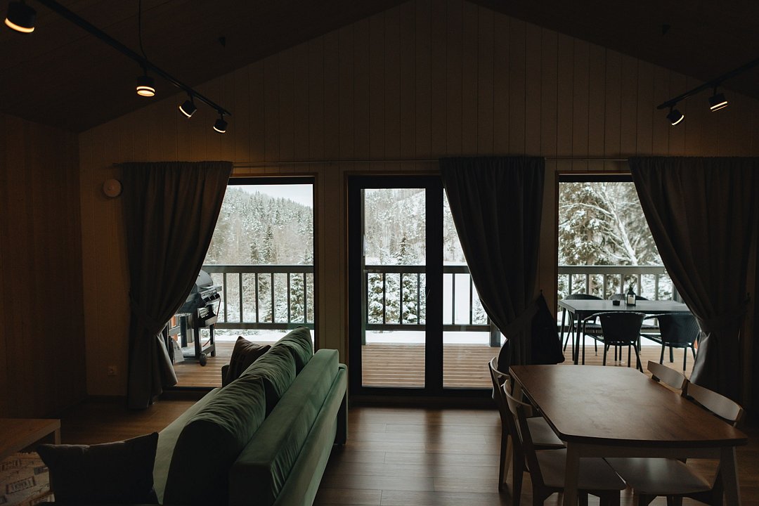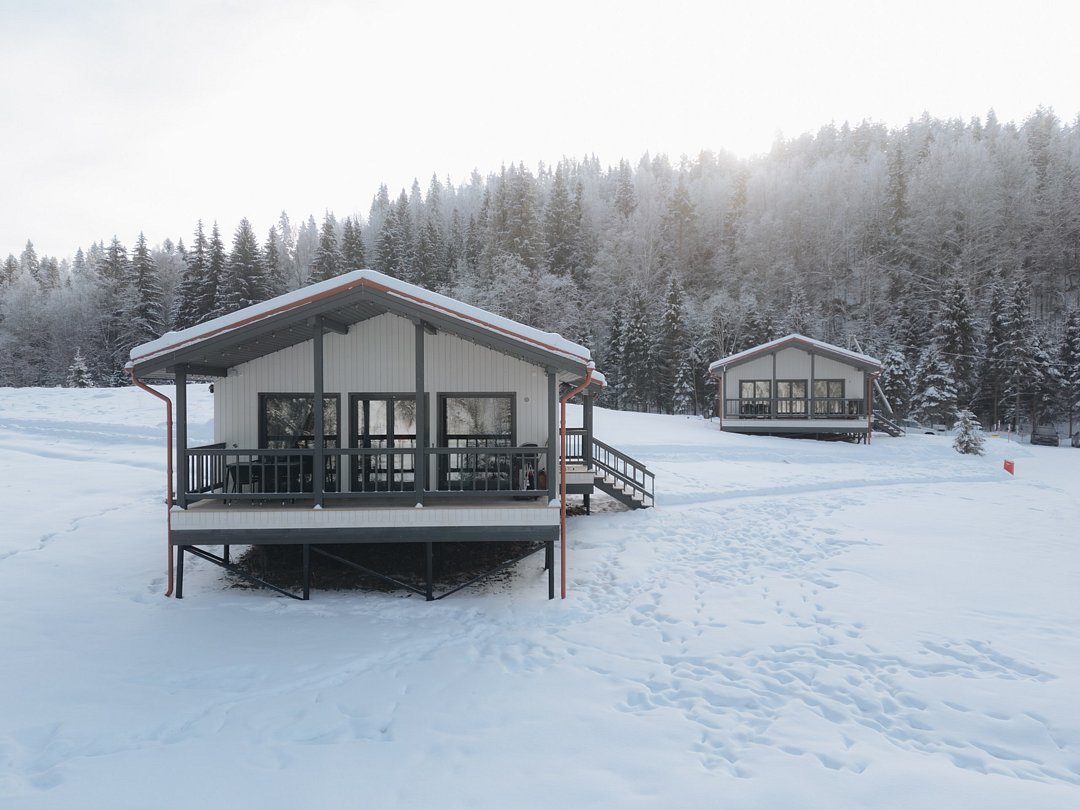 Для проживания гостей предлагаются новые дома с одинаковыми условиями, с панорамным видом на озеро и скалу. В домах максимально продуман комфорт, бытовая функциональность и удобство интерьера, чтобы ваш отдых проходил легко и непринужденно. В каждом доме имеются две спальни, ванная комната, просторная кухня-гостиная и терраса. В гостиной есть раскладной диван для дополнительных гостей. Современные удобства: кофемашина, холодильник, посудомоечная машина, а на террасе — газовый гриль для приятных вечеров.