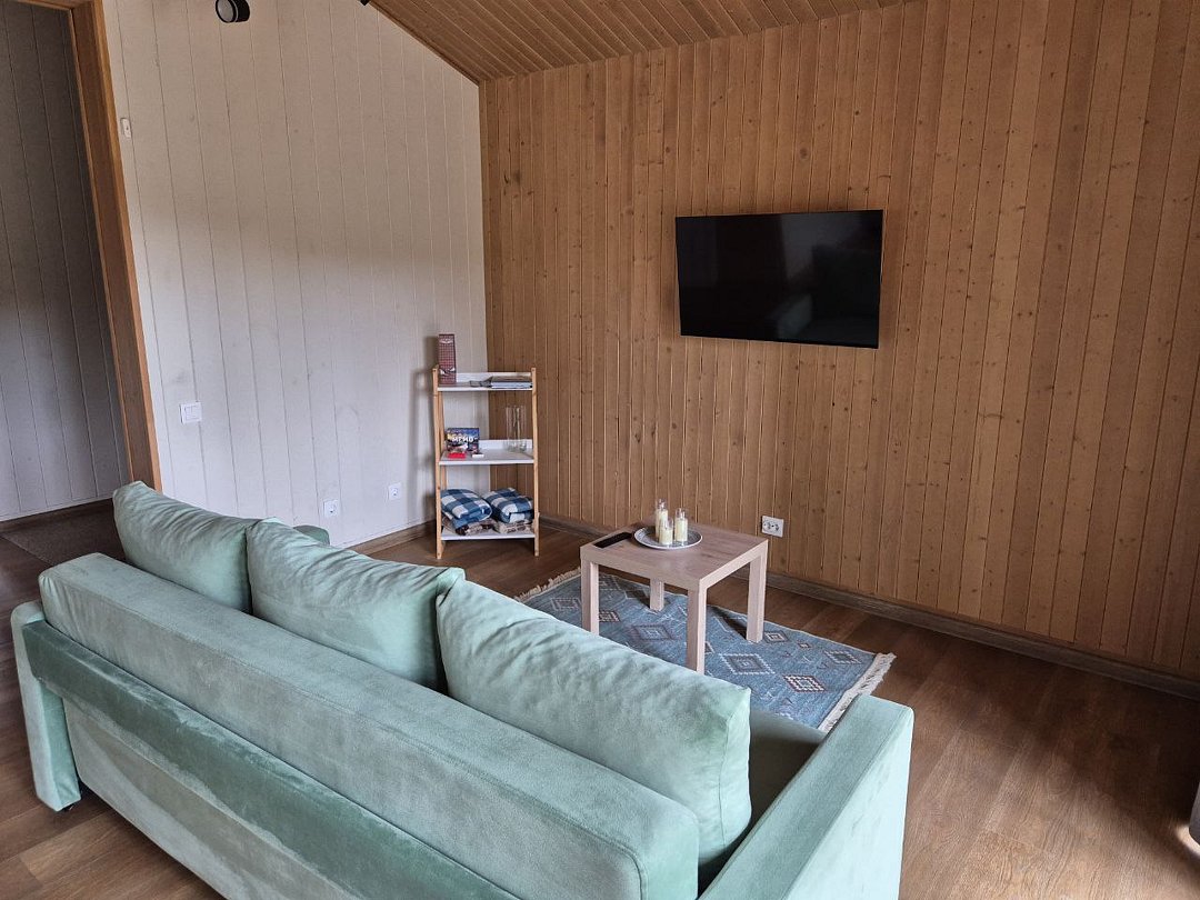 В доме 4 основных спальных места, и 2 дополнительных (диван в гостиной).