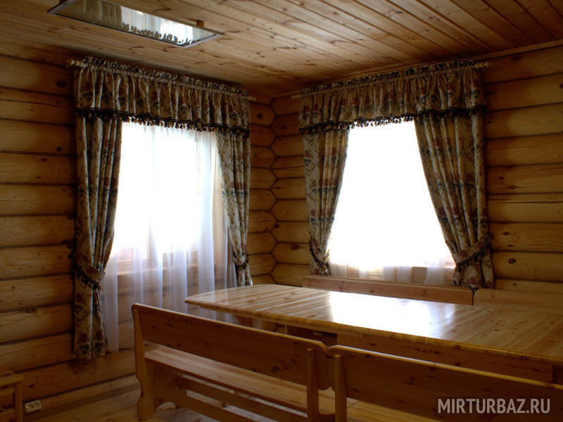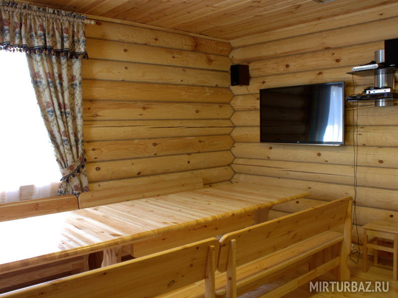 На территории базы отдыха расположены благоустроенные деревянные коттеджи круглогодичного действия.