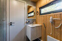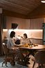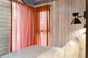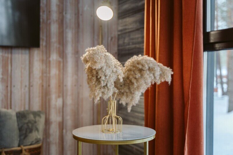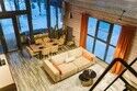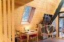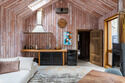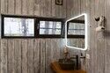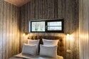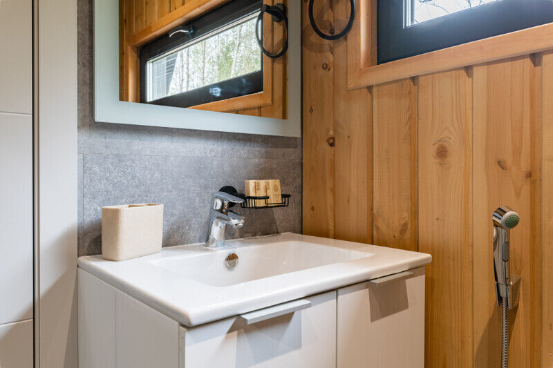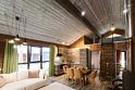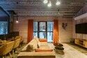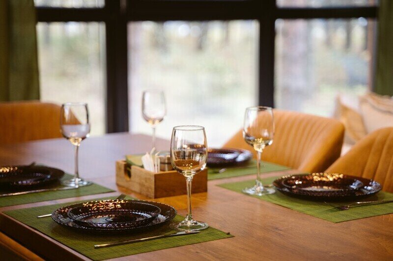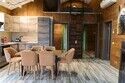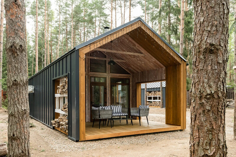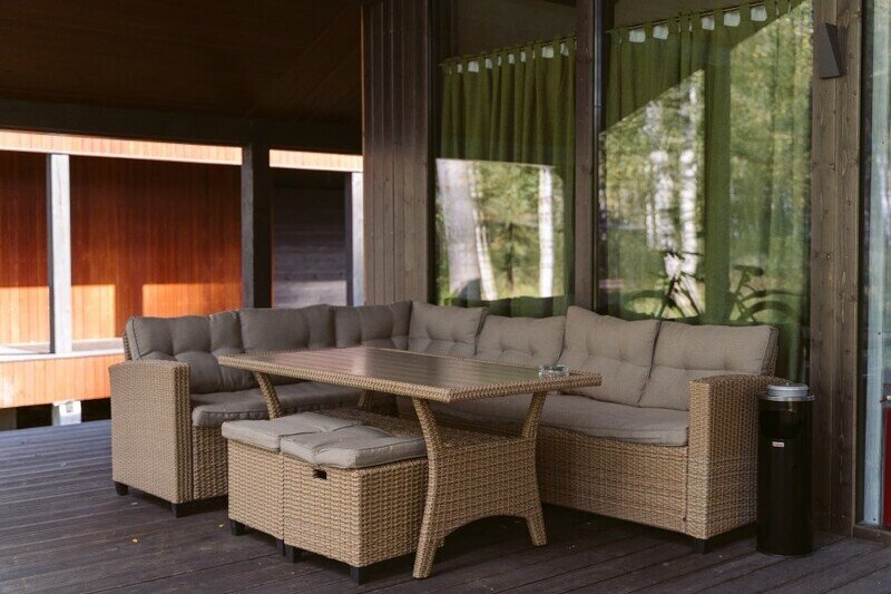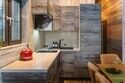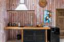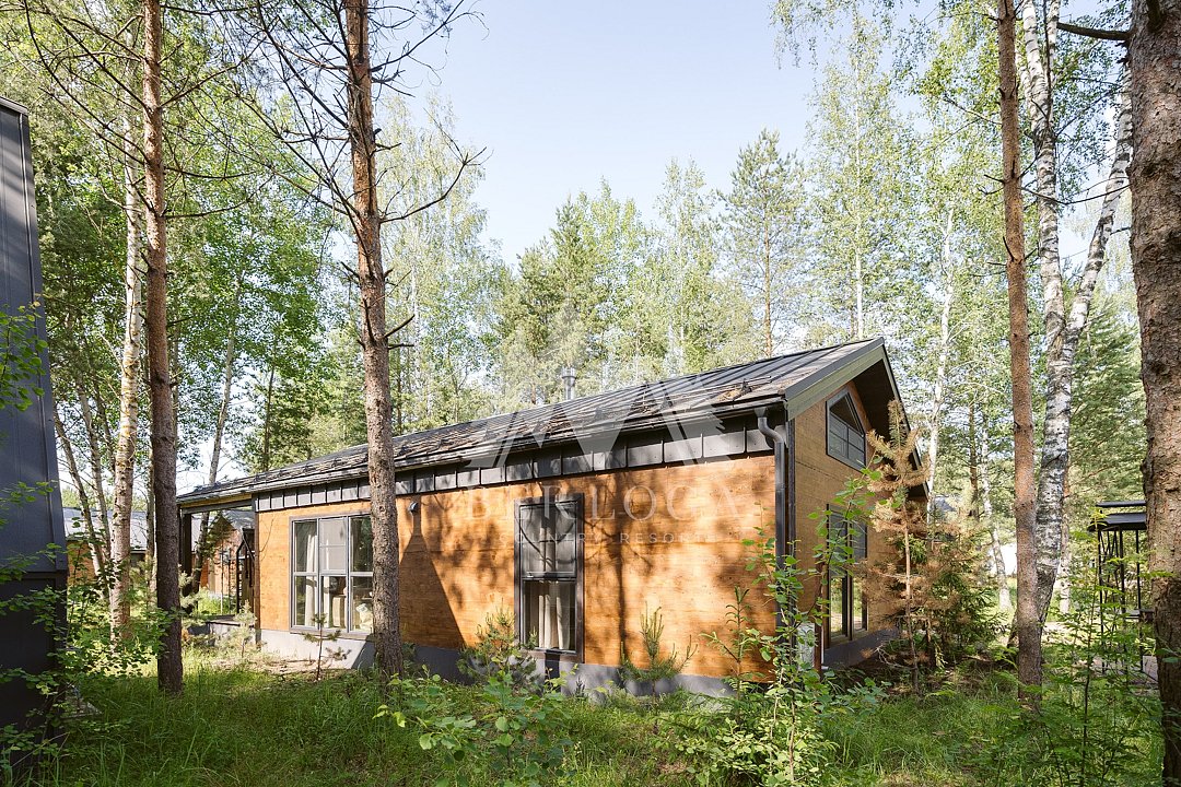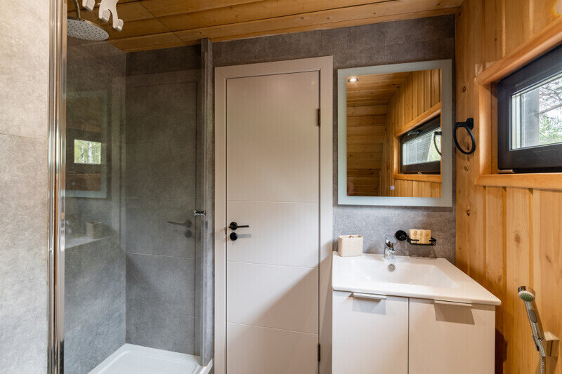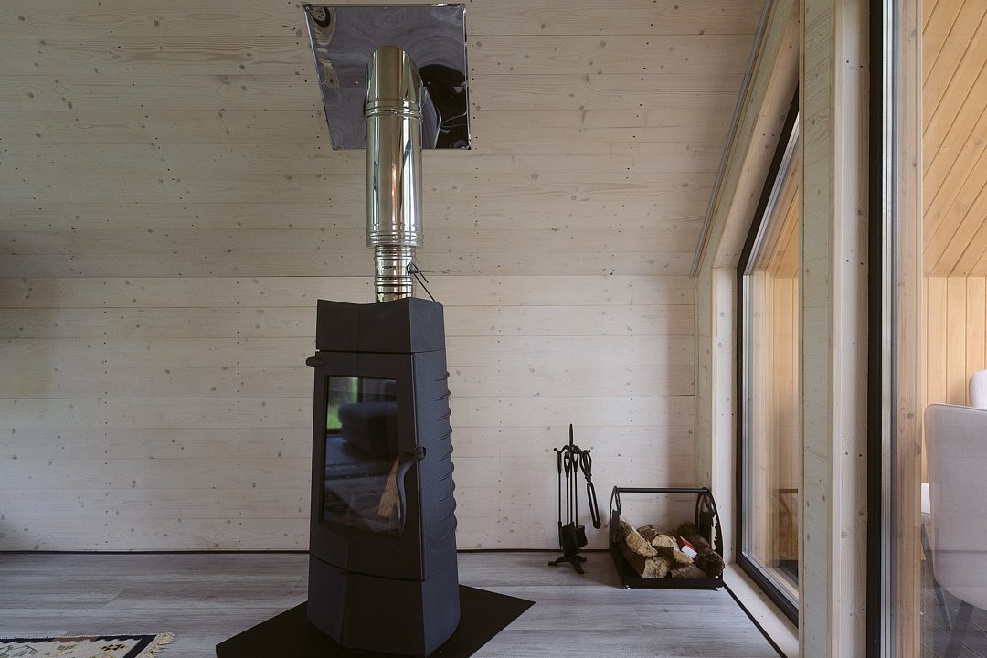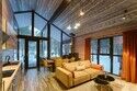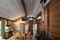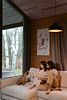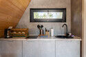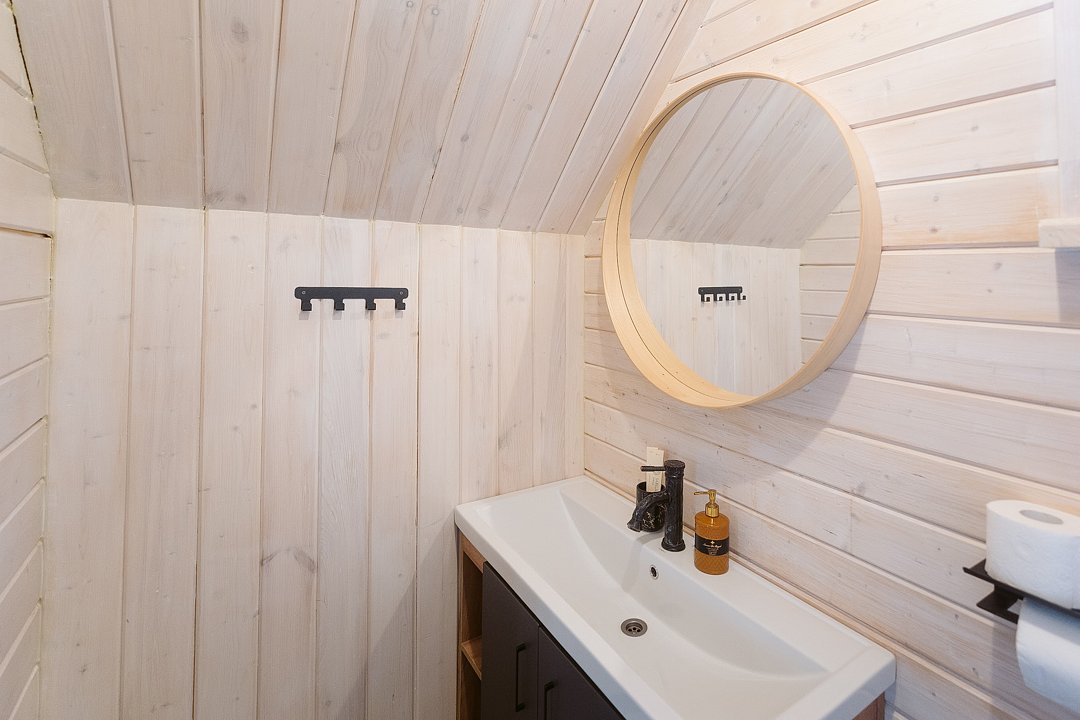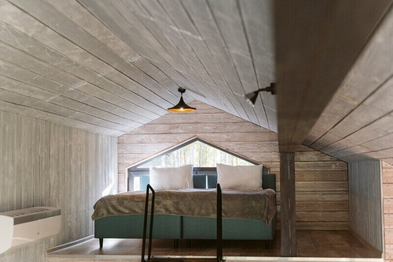 Гостиная совмещена с кухней и обеденной зоной. Увеличенная терраса с грилем и уличной мебелью для завтраков под теплыми лучами солнца и отдыха под открытым небом с видом на озеро. В этом уютном домике с большим панорамным окном есть своя собственная сауна. Максимальная её температура составляет 60°. Подходит для компании друзей или семьи. На заднем дворике расположена барбекю зона.