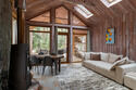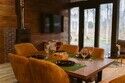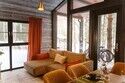 Уютный домик с одной изолированной спальней с камином и кроватью KingSize, гостиная с камином, большим диваном кроватью с панорамными окнами.