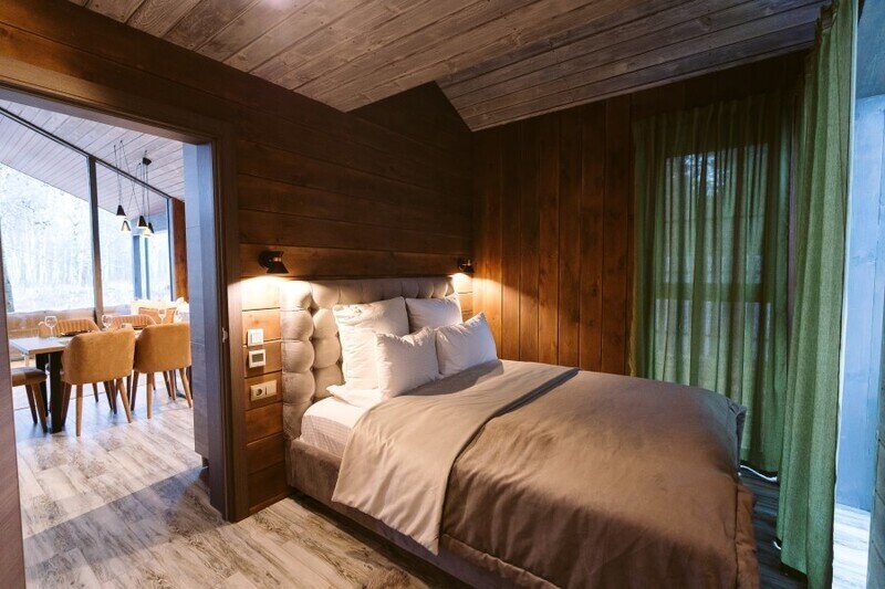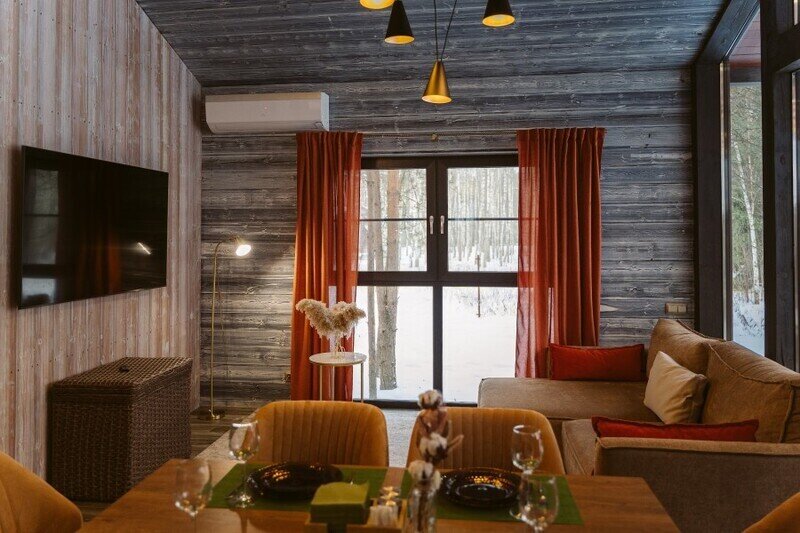 Путешествие с семьейСуперотдых в отеле Берлога КантриОтдыхали с семьей в Берлоге на выходных. Снимали домик Les Chale. Это просто райское место! Отдохнули от суеты и стресса по полной программе! Домик просто шикарный, очень уютный, теплый, комфортный. Много места в гостинной. Можно погреться у камина и посмотреть вечером телек, который, к стати огромный. Спальня очень уютная, большая кровать с хорошим матрасом, все очень стильно и красиво! Жарили шашлыки на веранде, пили вино и слушали пение птиц. На кухне есть все необходимое для приготовления еды. Продукты привезли с собой, правда можно было заказать еду из ресторана, очень вкусно там готовят. В общем, понравилось все, и обслуживание, и отель, и конечно же домик, ВСЕМ РЕКОМЕННДУЮ! Приедем сюда обязательно снова!