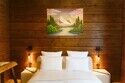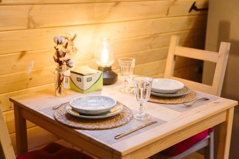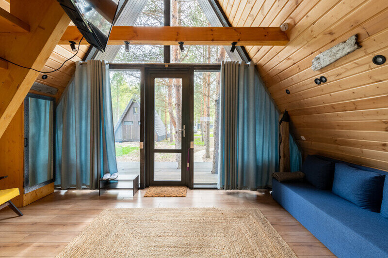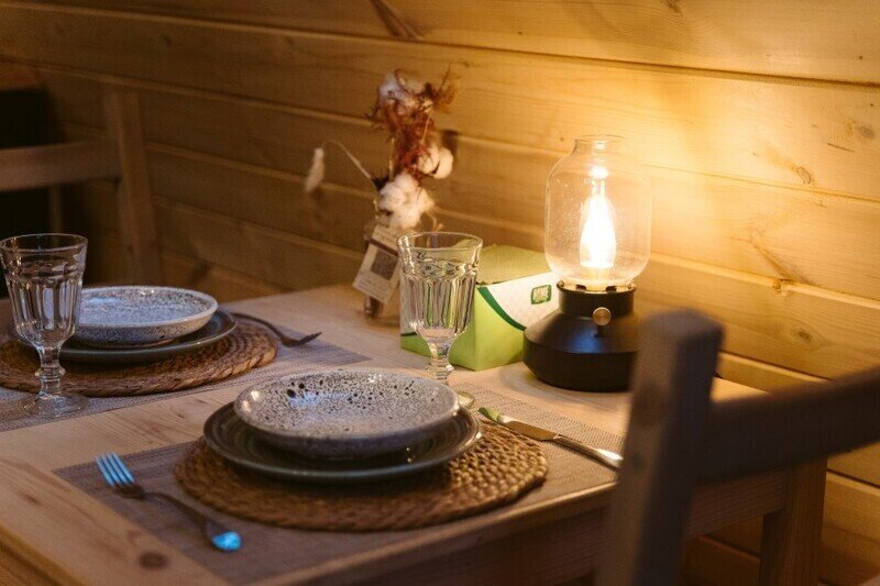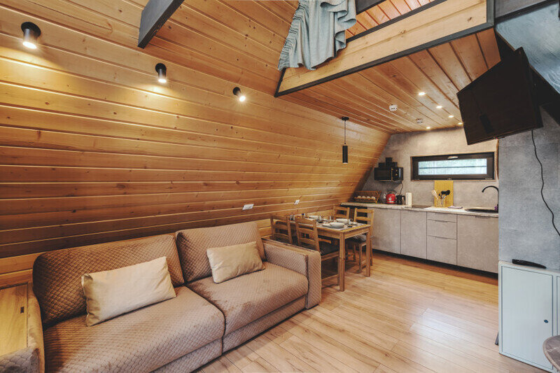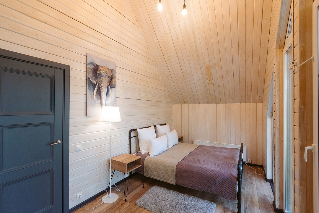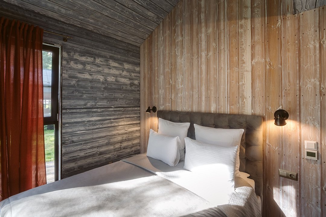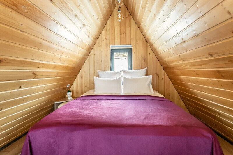 Здесь вы найдёте все условия для комфортного проживания, ведь домики хорошо оснащены. В каждом из них есть спальня, кухня-гостиная и собственный санузел. Для гостей подготовлено постельное белье, набор полотенец и гигиенические средства, а также предоставляется питьевая вода, набор чая, сахар и специи. Из оборудования имеется телевизор, фен, кондиционер, а также беспроводной интернет.