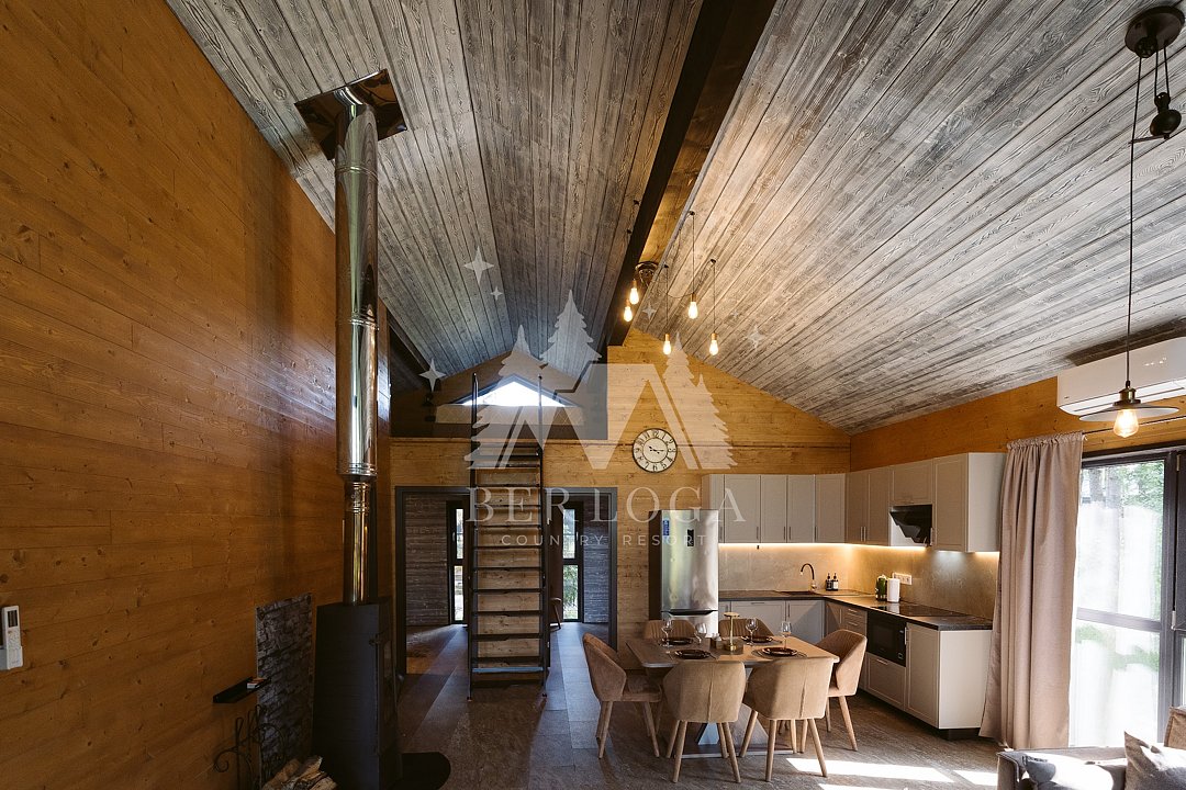 Система отопления и кондиционирования, теплый пол, телевизор с интернет каналами, спальня, гостиная с диваном кроватью, санузел, ванная с эко-косметикой , кухня со столовыми приборами, плитой и микроволновой печью, чайный набор, бесплатный Wi-Fi, барбекю зона.