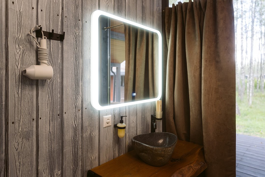 В доме есть все, что необходимо: система отопления и кондиционирования, телевизор, спальня, гостиная, санузел, душевая с эко-косметикой, кухня со столовыми приборами, плитой и микроволновкой, бесплатный Wi-Fi, барбекю зона.