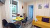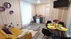 - полноценная кухонная зона с варочной панелью и холодильником.