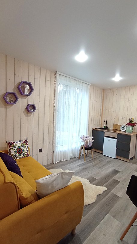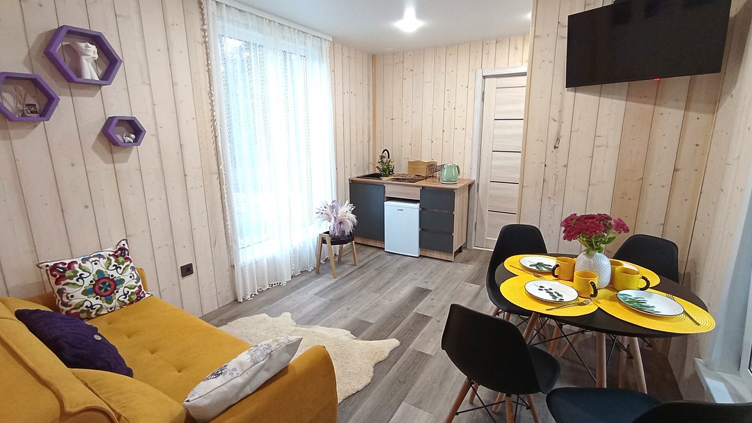 Домик рассчитан на комфортное проживание двух человек, но в случае необходимости можно разместиться и вчетвером.