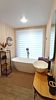- комфортная ванная комната с панорамным окном и видом на лес.