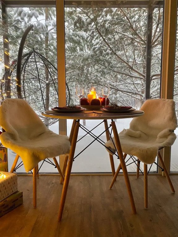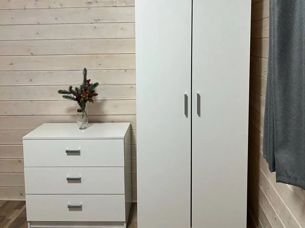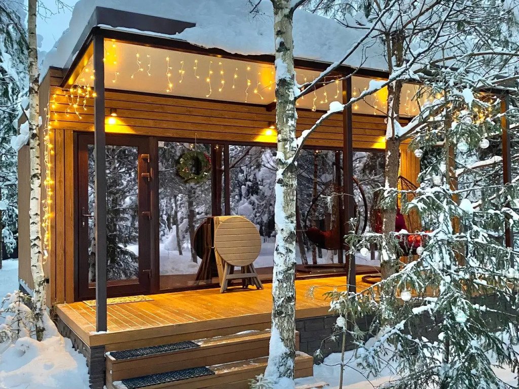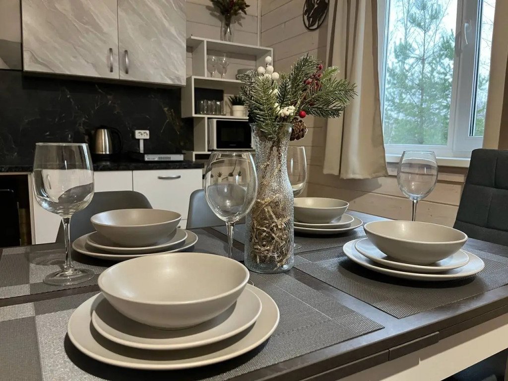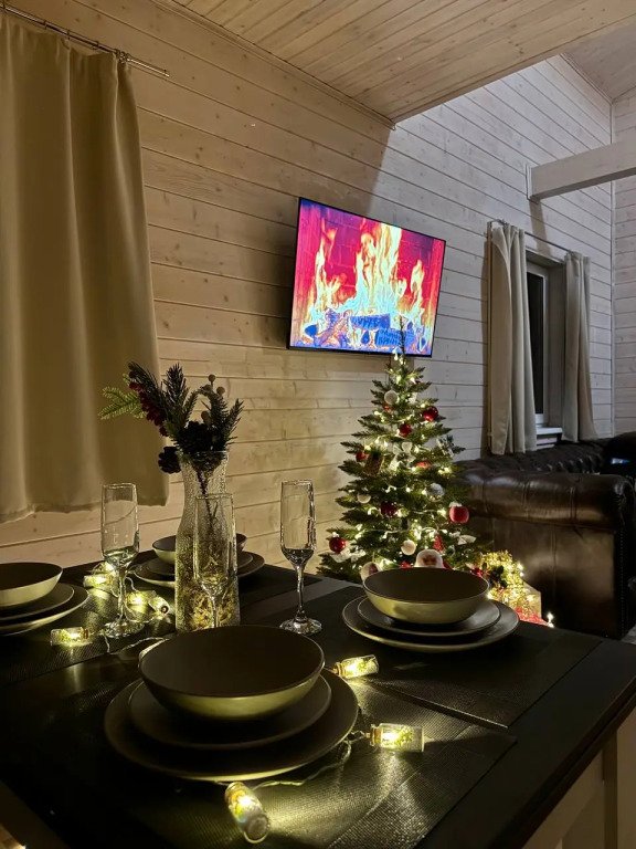 Дом на 6 человек с 3 спальнями и гостиной с кухней. Дом находится в 200 метрах от территории Skazka в лесу и в 100 метрах от леса. Проживающим доступны услуги аренды деревенской сауны и проката инвентаря.
