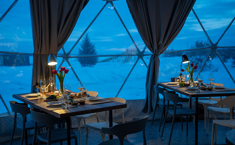 Катание в теплых санях по озеру, лесу или на каменные палатки. Тепло, красиво, весело! Можно встретить косулю, лисицу, зайца. Панорамный вид и вкусный чай в термосе.