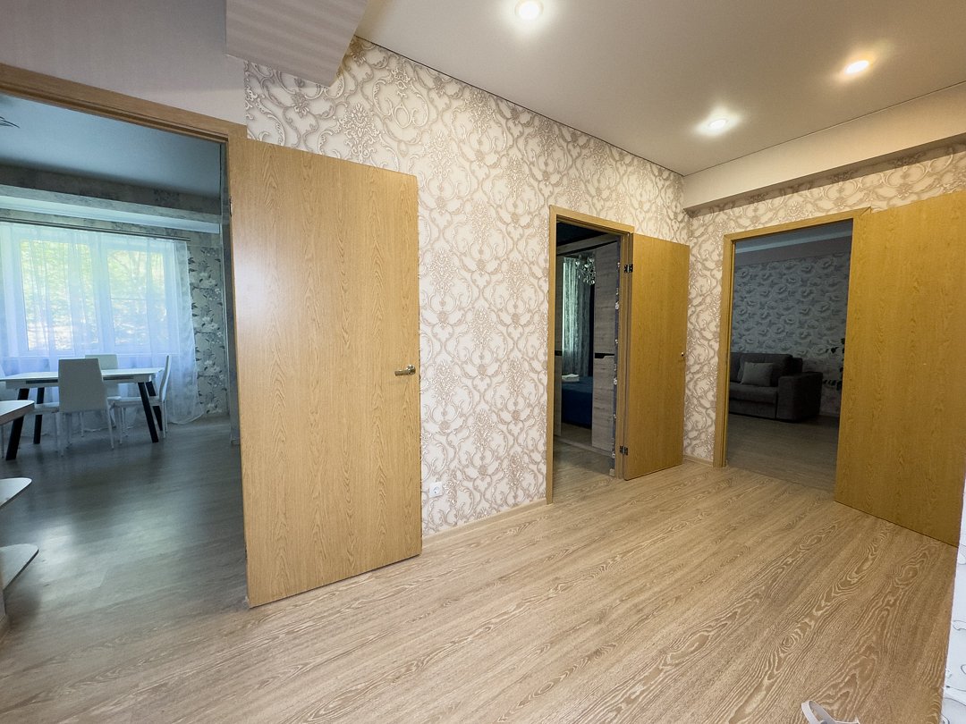 Удобное расположение, комфортные кровати и доступные цены обеспечат вам отличный отдых. В квартире двуспальная кровать, два дивана и три комнаты. Ванная комната одна.