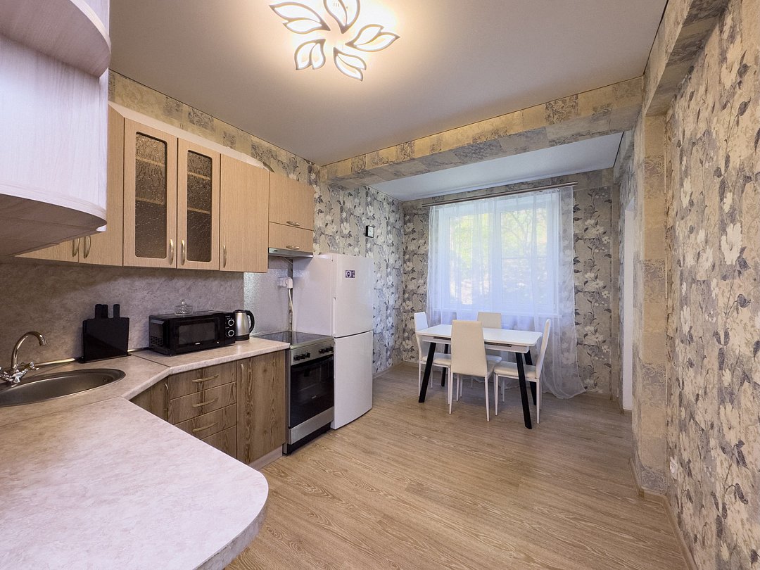 Здесь вас ждет чистая и уютная квартира в тихом зеленом районе, недалеко от реки. Она расположена в спальном районе, где можно отдохнуть от городской суеты.