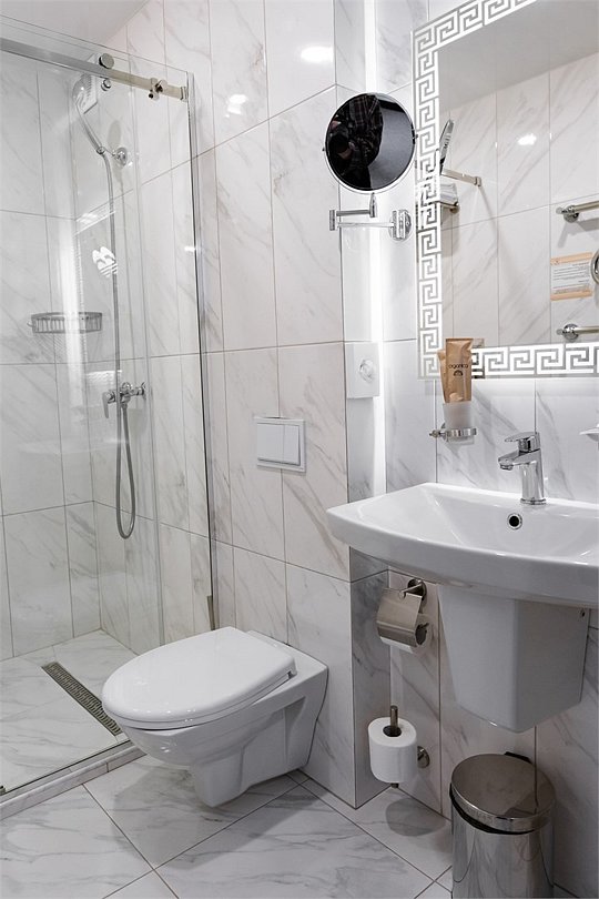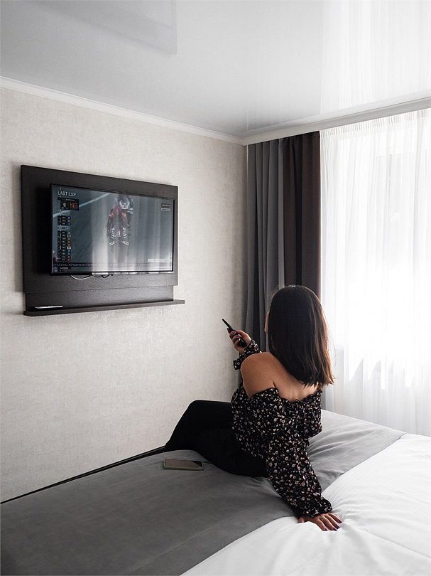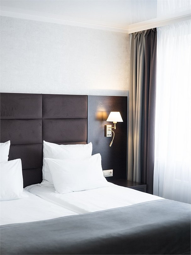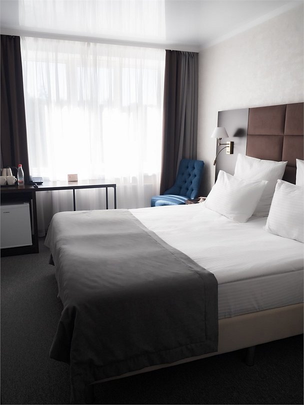 Wi-Fi, кондиционер, фен, утюг, душевая кабина, халаты, тапочки, две односпальные кровати, две односпальные или большая двуспальная кровать, шкаф для одежды, вешалки, зеркало, чайный набор, сейф, унитаз, раковина, ковровое покрытие, душ, вид на город, кресло, меню подушек, стаканы, тумба, туалетные средства, туалет, внутренний телефон, телевизор с плоским экраном, мини-холодильник, чайная станция, уборка номера, можно с питомцамиВ гостиничном номере