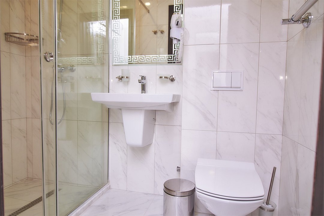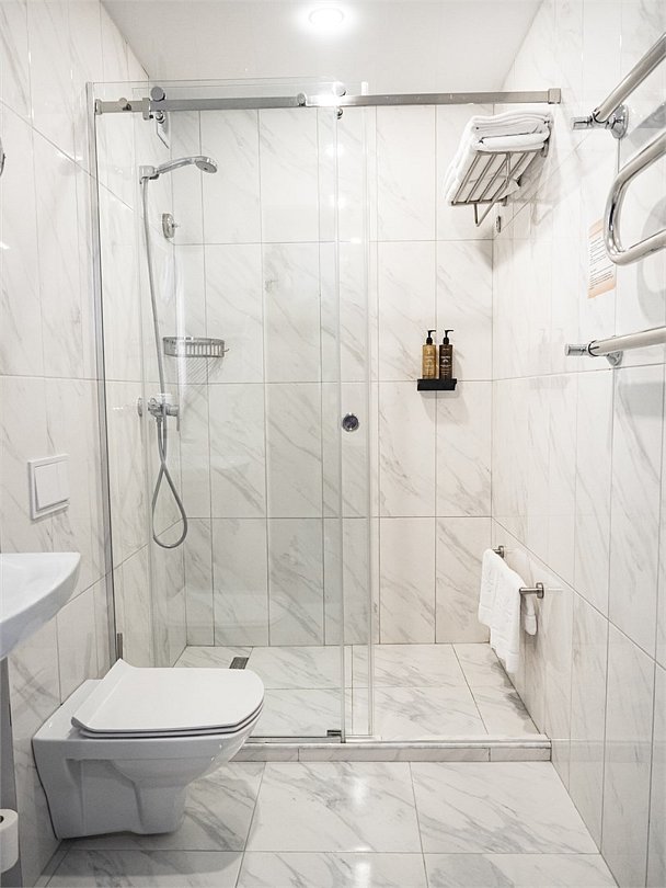 Wi-Fi, кондиционер, светильник, фен, электронные замки, ванная комната, душевая кабина, санузел, банные принадлежности, халаты, банные полотенца, тапочки, гигиенические средства, балкон с красивым видом, двуспальная кровать, диван, шкаф для одежды, вешалки, зеркало, комод, ковер, чайник, унитаз, раковина, отопление, вид на город, плиточное покрытие, меню подушек, стаканы, телевизор с плоским экраном, мини-холодильник, джакузи, чайная станция, уборка номера, вешалки-плечики, бутилированная вода, можно с питомцамиВ гостиничном номере