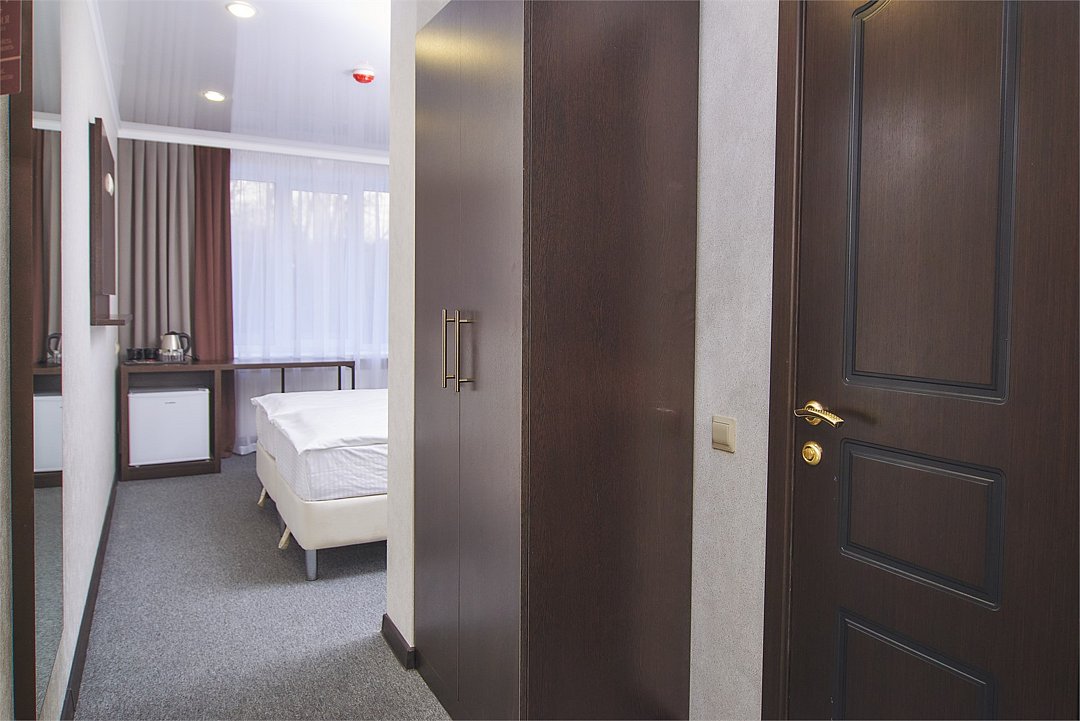 Небольшой уютный номер для одного или двух человек. Окна всех номеров этой категории выходят на тихую часть города и парка, что позволит открыть окно и наслаждаться свежим воздухом Кисловодска в тишине. А комфортные ортопедические матрасы обеспечат прекрасный сон. Кровати при необходимости можно объединить в большую 2-спальную кроватьУслуги и удобства