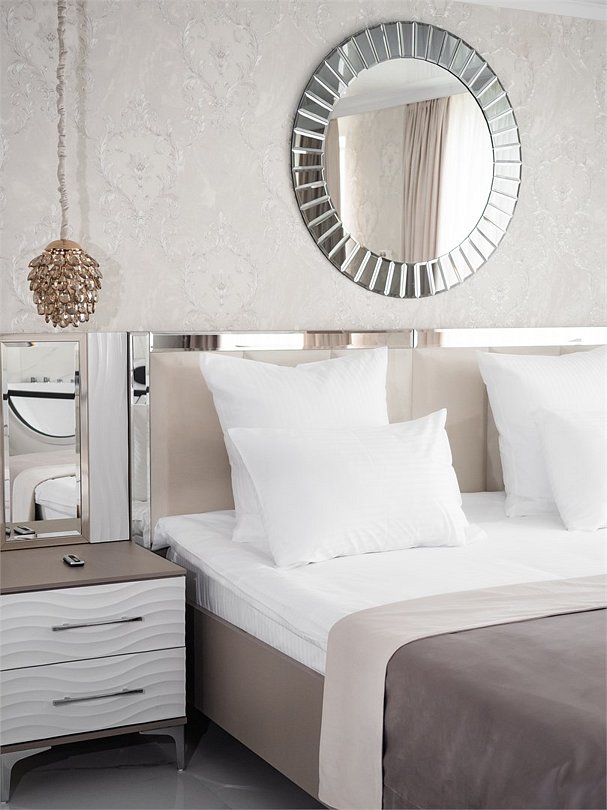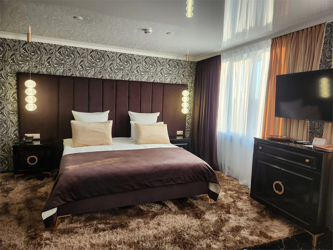 Wi-Fi, кондиционер, светильник, фен, электронные замки, ванная комната, душевая кабина, санузел, банные принадлежности, халаты, банные полотенца, тапочки, гигиенические средства, балкон, балкон с красивым видом, кровать «King size», шкаф для одежды, вешалки, зеркало, ковер, чайный набор, раковина, вид на город, кулер на этаже, плиточное покрытие, кресло, меню подушек, внутренний телефон, телевизор с плоским экраном, мини-холодильник, джакузи, чайная станция, услуги прачечной (платно), вешалки-плечики, бутилированная вода, можно с питомцамиВ гостиничном номере