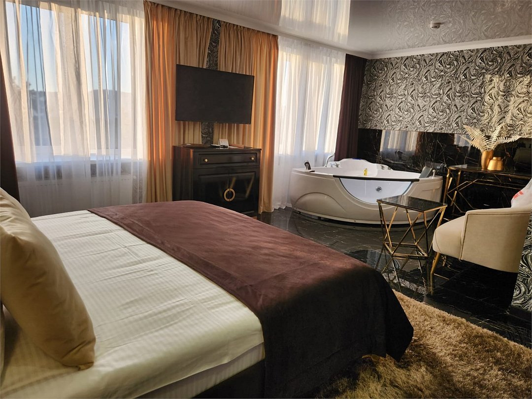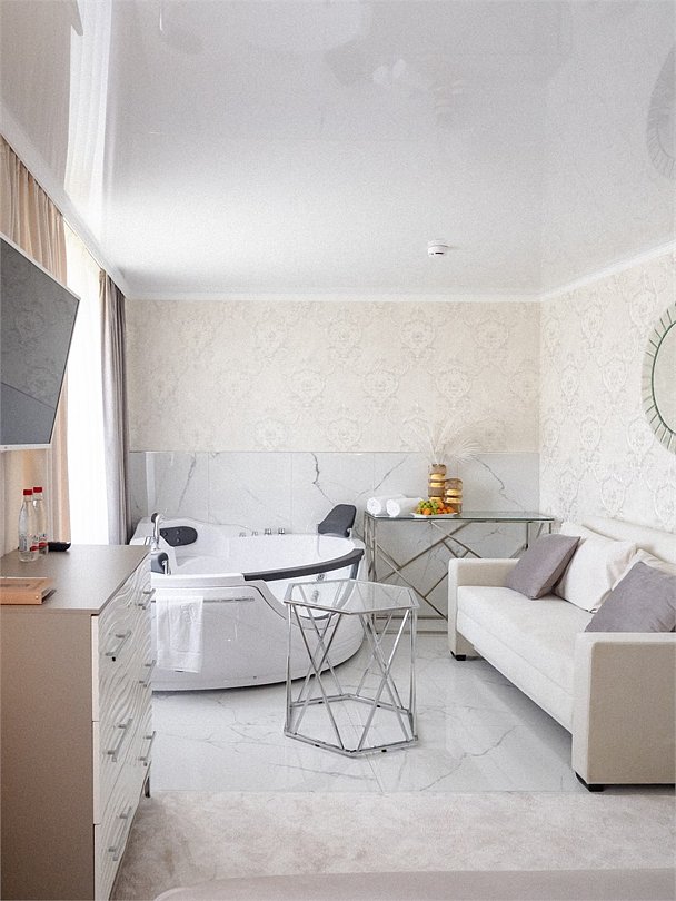 Просторный номер с джакузи — идеальный выбор чтобы насладиться обществом друг друга! Атмосфера номера расслабляет, настраивает на романтический лад... Номер прекрасно подойдет для молодоженов, для романтического свидания или просто отличного отдыха!Услуги и удобства