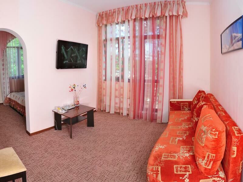Гостевой дом располагает 36 номерами категорий стандарт и люкс со всеми удобствами (включая телевизор, холодильник и санузел). Здесь готовы принять как семьи с детьми, так и компании друзей или коллег.