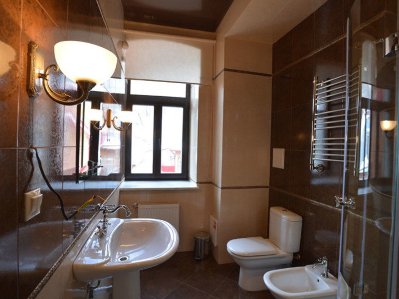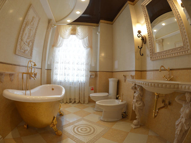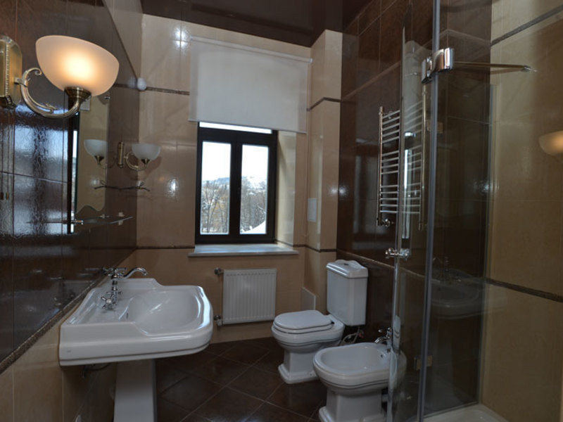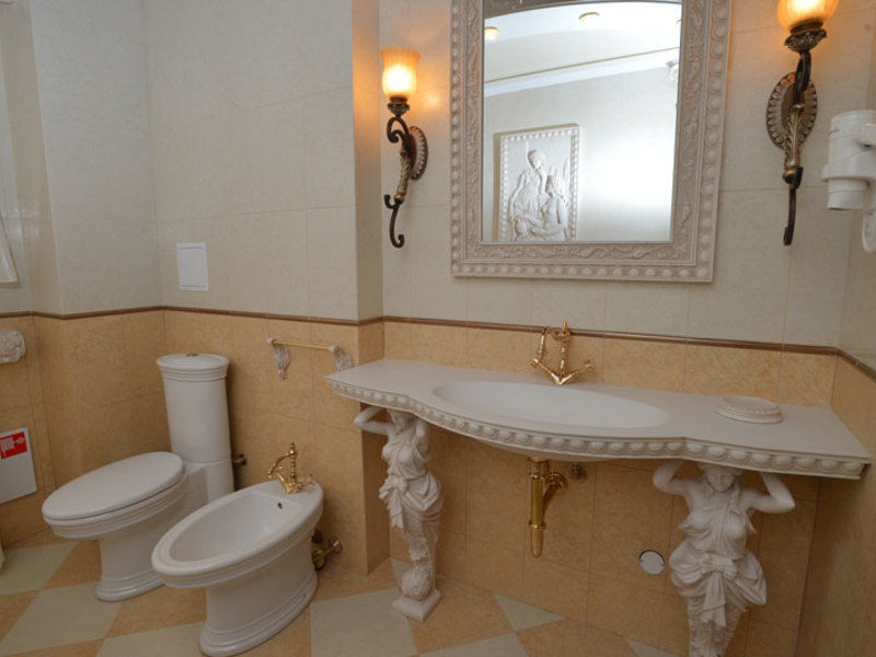 Кухня оснащена всем необходимым, имеется электрическая печь, микроволновая печь. В номере два санузла. Ванная комната оснащена ванной с душем. Имеются - фен, индивидуальный набор гигиенических средств, комплект полотенец, халат, тапочки. Есть балкон с летней парковой мебелью.