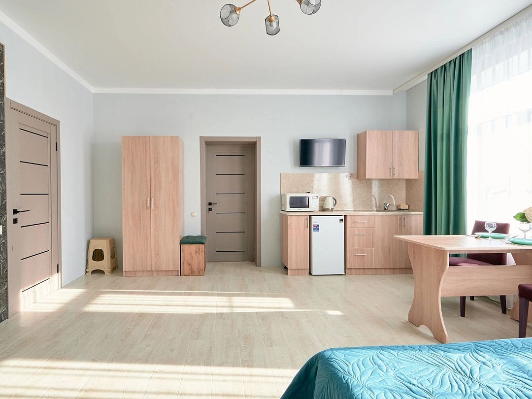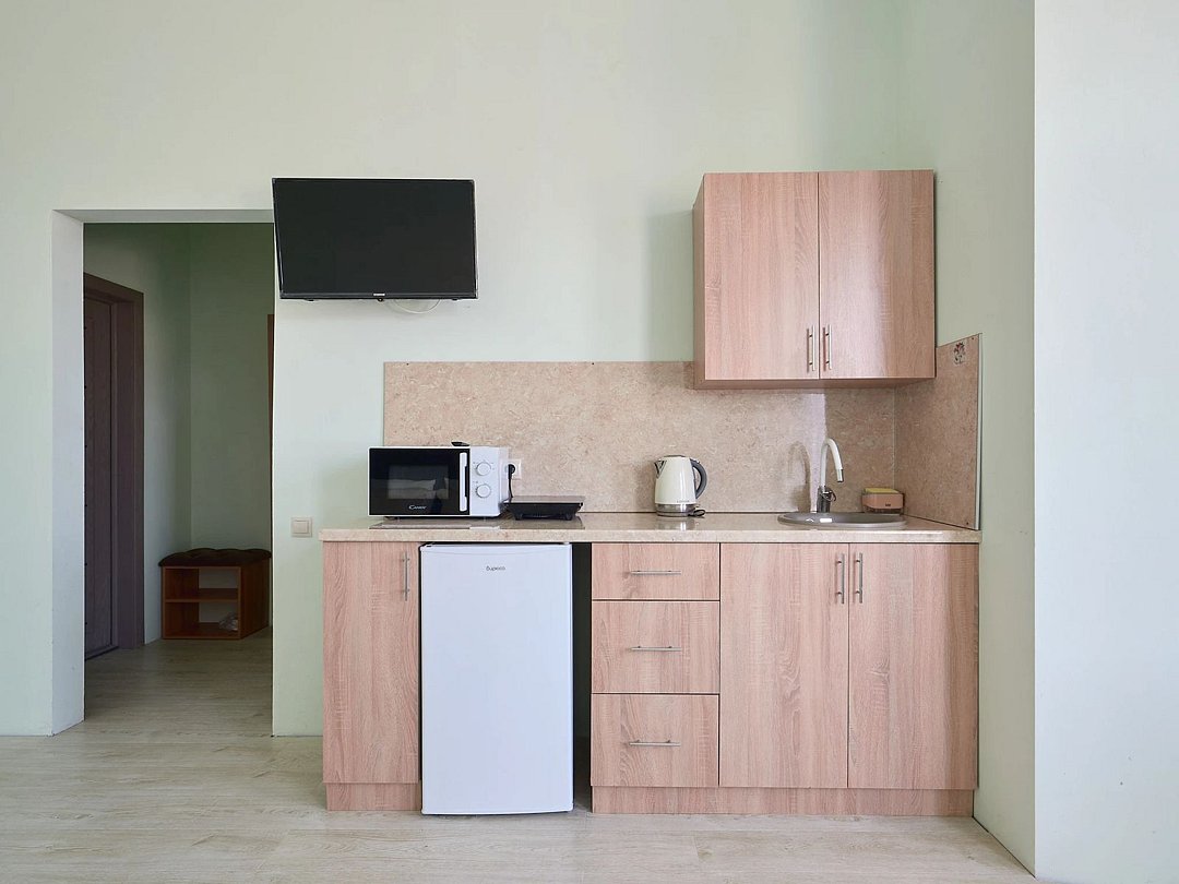Двухкомнатный номер шестиместный с двумя санузлами и кухней.