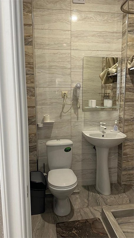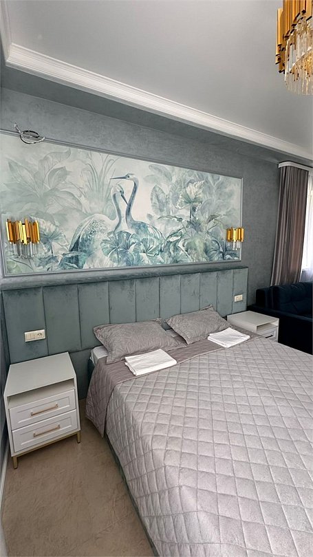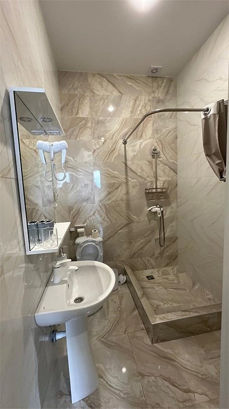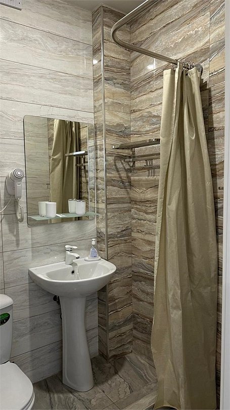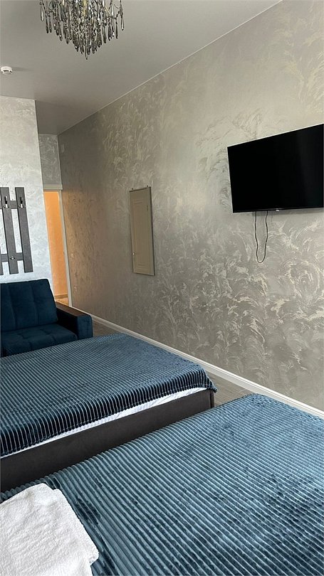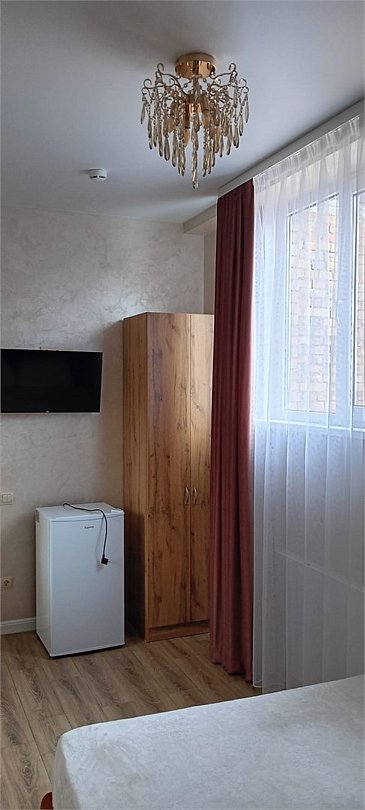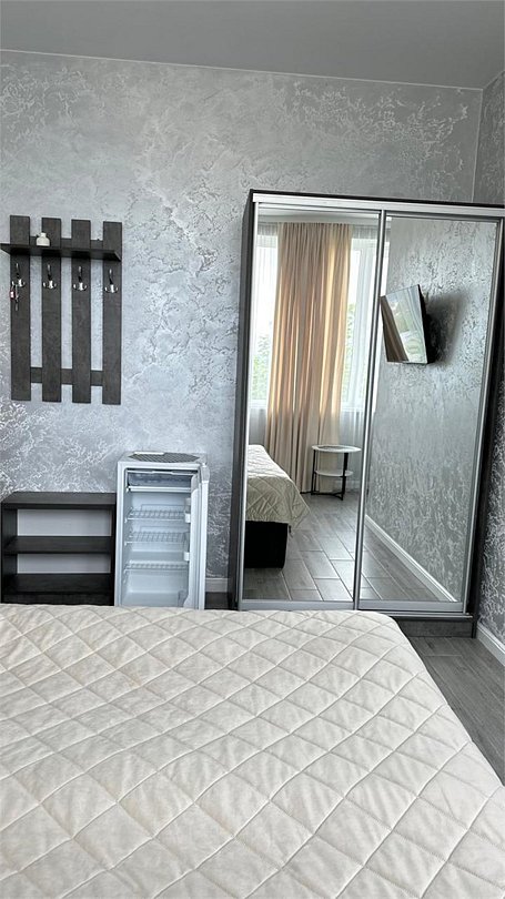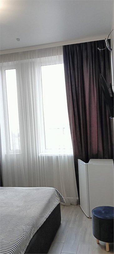 очень уютный номер для проживания в интересном цвете с двухспальной кроватью. Номер оборудован всем необходимым для комфортного проживания: холодильником, телевизором, так же предоставляется фен, разовые тапочки.Услуги и удобства