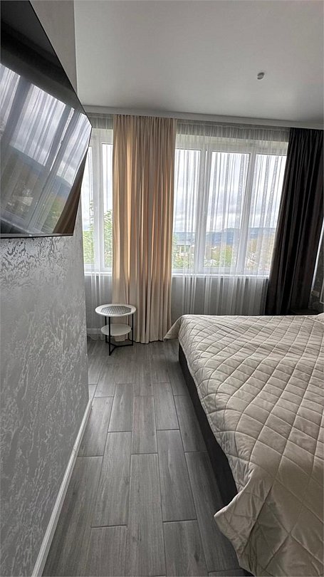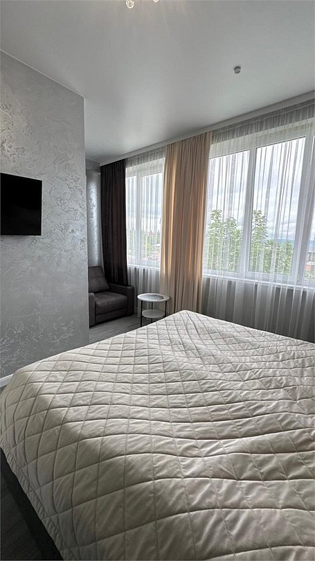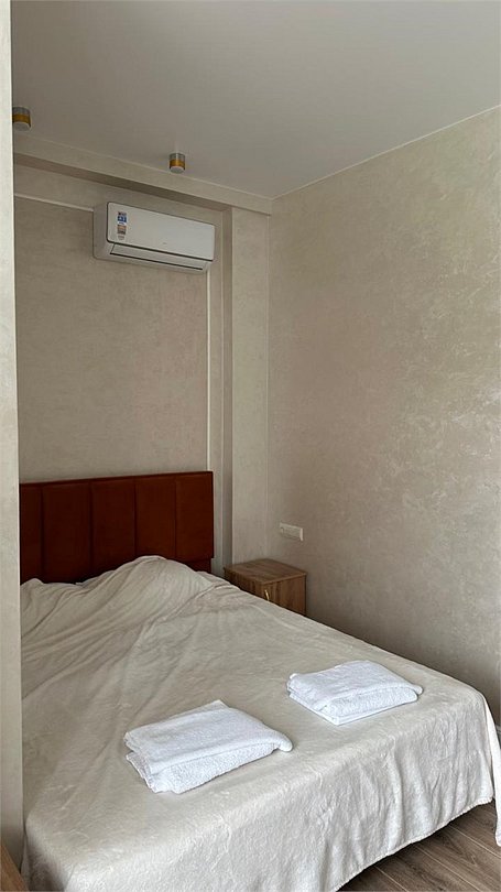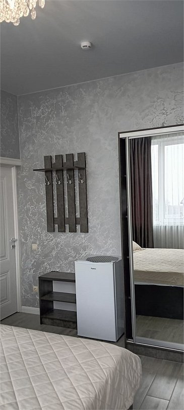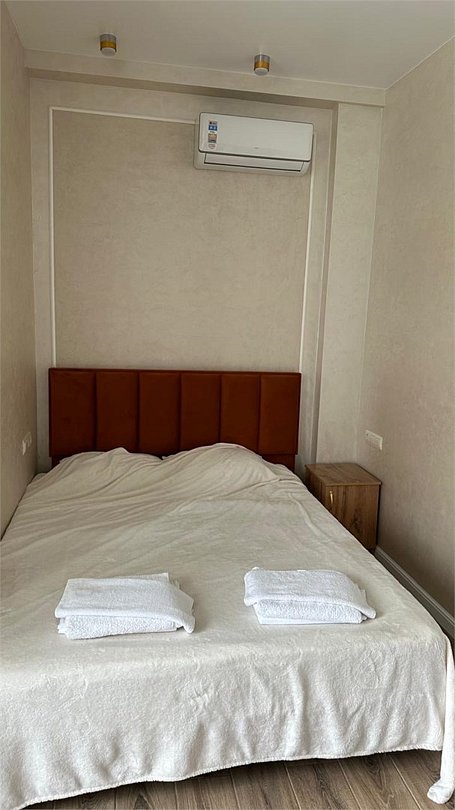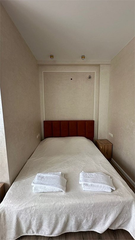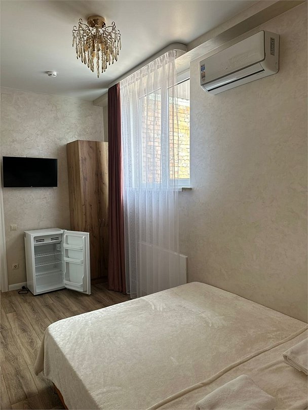 Уютный однокомнатный номер с большой двуспальной кроватью Размером 180/200 Номер оборудован всем необходимым для комфортного проживания: холодильником, телевизором, так же предоставляется фен, разовые тапочки.Услуги и удобства