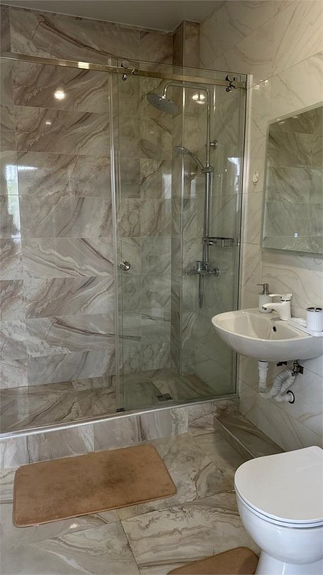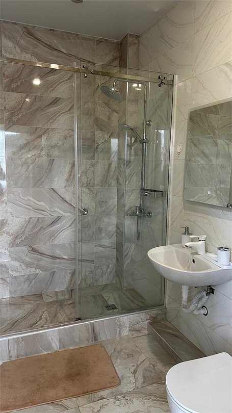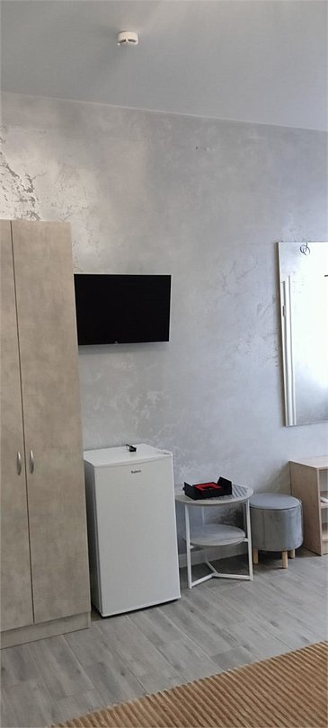 Wi-Fi, холодильник, фен, двуспальная кровать, шкаф для одежды, вешалки, зеркало, пуфики, унитаз, раковина, душ, стол, диван-кровать, телевизор с плоским экраномВ номере