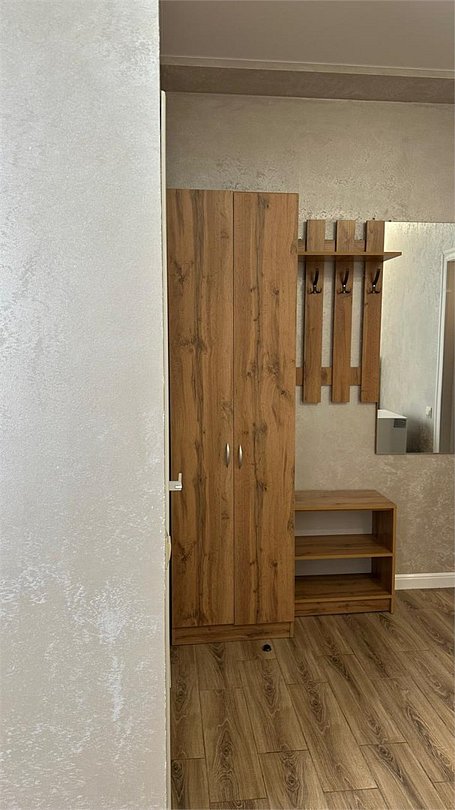 Wi-Fi, холодильник, фен, двуспальная кровать, шкаф для одежды, вешалки, зеркало, унитаз, раковина, душ, телевизор с плоским экраном, пуфикВ номере