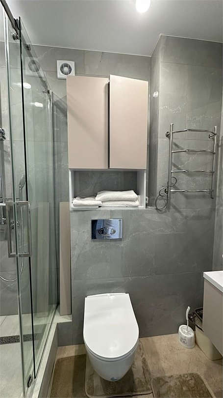 Wi-Fi, холодильник, фен, душевая кабина, двуспальная кровать, тумбы, вешалки, унитаз, раковина, телевизор с плоским экраном, шкаф-купеВ номере