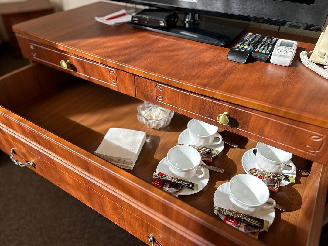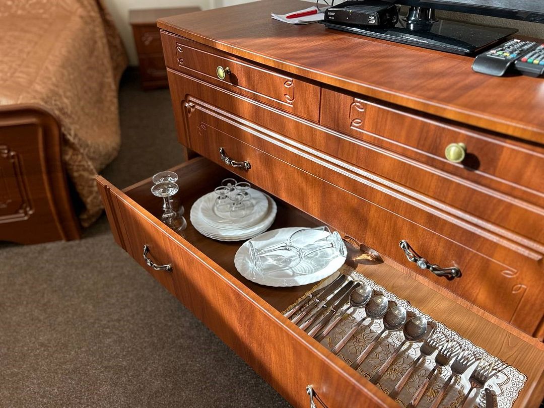 - Мини-бар: чай, кофе, сахар и бутилированная вода.