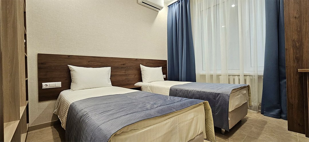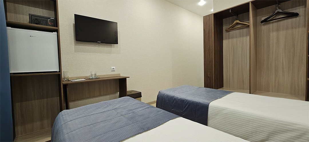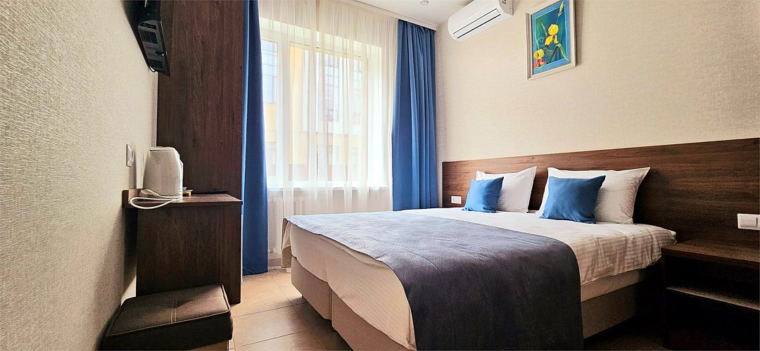 Мы предлагаем уютные номера категории "Стандарт", которые подойдут как для индивидуальных путешественников, так и для пар или семей. Каждый номер оснащен удобной мебелью, включая двуспальную кровать или две отдельные кровати по вашему выбору. Все комнаты оборудованы кондиционером, телевизором и бесплатным доступом к Wi-Fi.Услуги и удобства